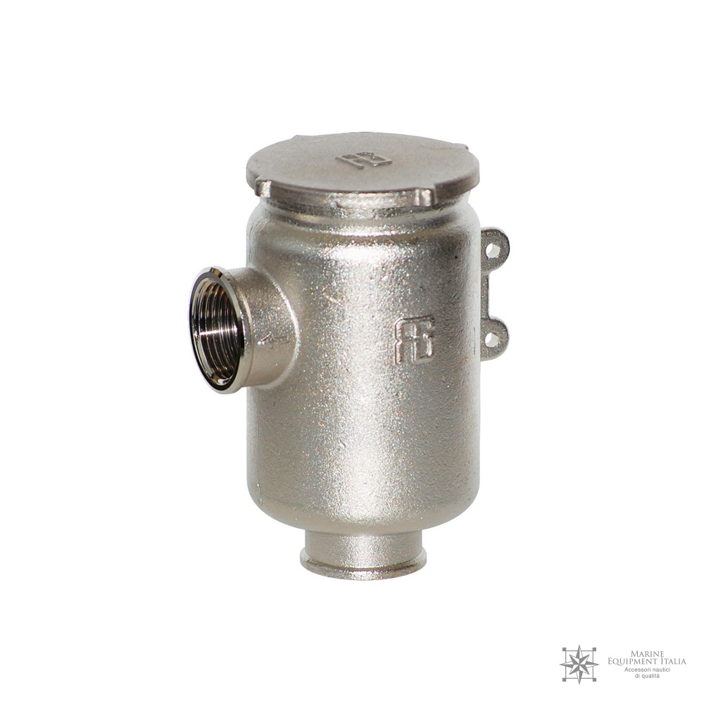 Filtro depurazione acqua serie "Tirreno", prodotto da Guidi. È ideale per applicazioni con flusso d'acqua angolato, ed è progettato per piccoli motori, generatori e sistemi di condizionamento d'aria.